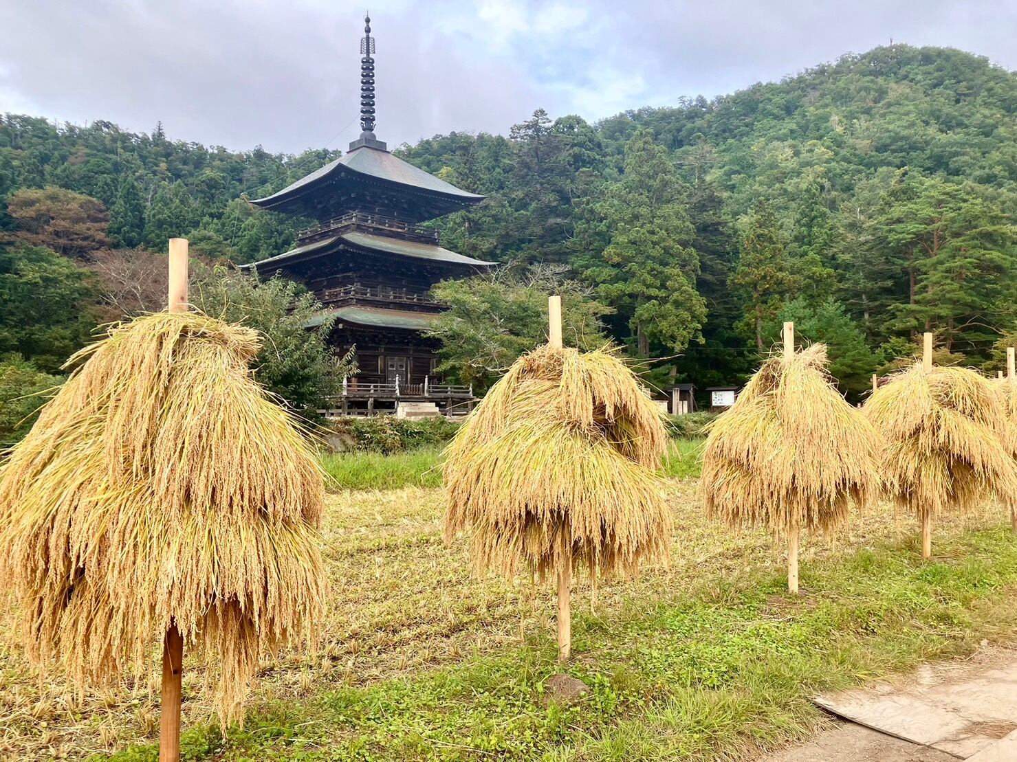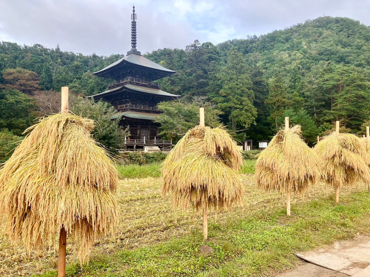 丁寧に刈り取り、一つ一つ杭掛けにして天日干ししました。